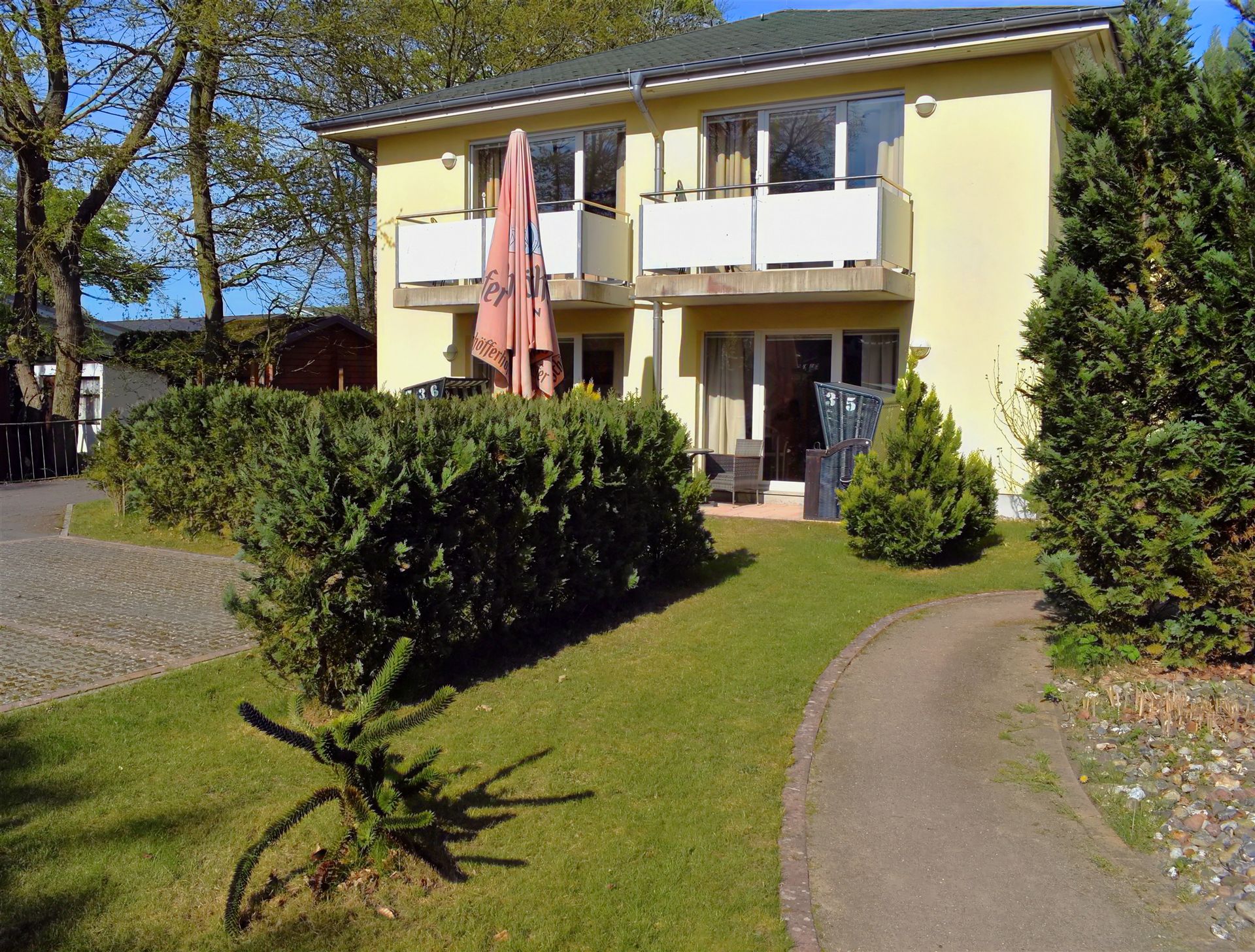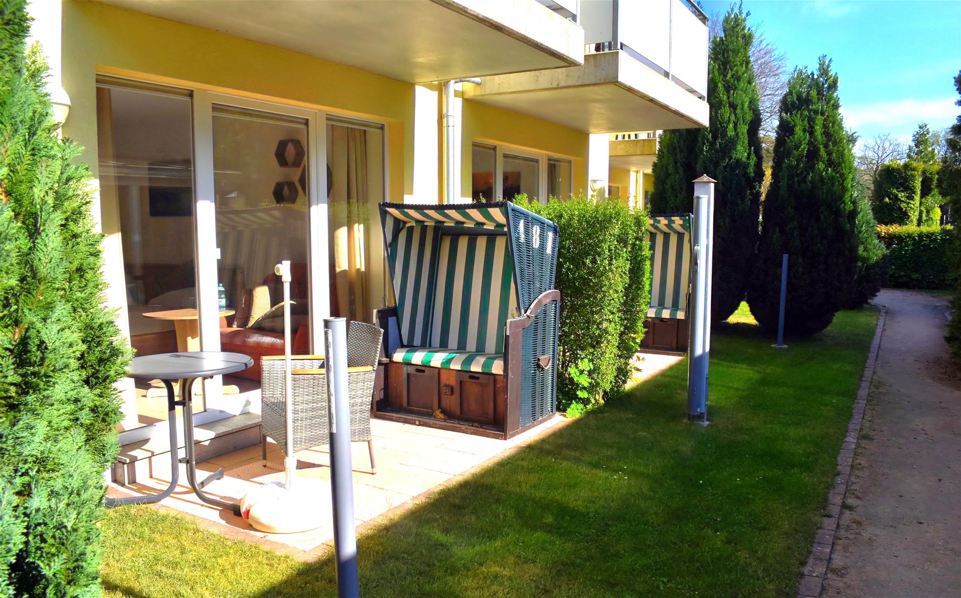 Alle Wohnungen verfügen über einen separaten Eingang und sind mit Balkon oder Terrasse ausgestattet, die jeweils zur Sonnenseite ausgerichtet sind. So genießen Sie die Sonneninsel in vollen Zügen.