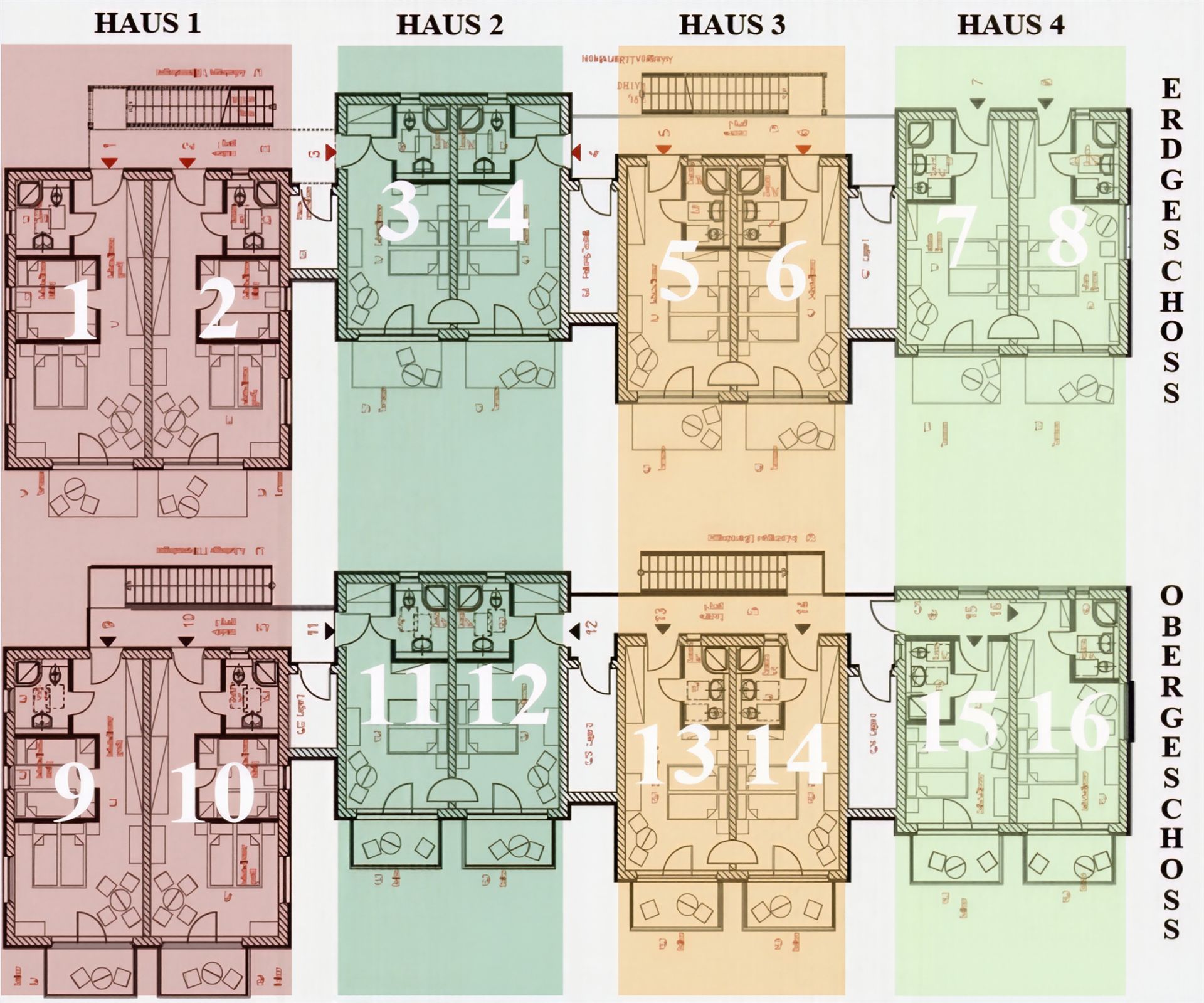 Wir können Ihnen insgesamt 16 Wohnungen mit folgender Aufteilung anbieten: